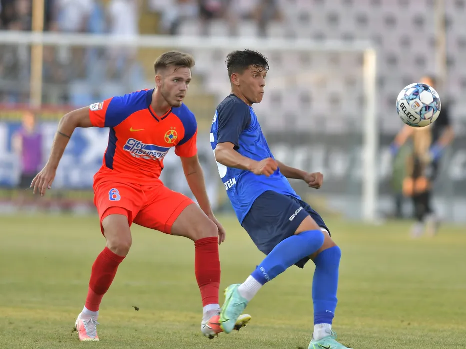 Denis Gratian Harut si Tudor Oltean in meciul amical de fotbal dintre FC Buzau si FCSB, disputat pe Stadionul Gloria din Buzau, vineri 9 iulie 2021. © FOTO:Razvan Pasarica/SPORT PICTURES