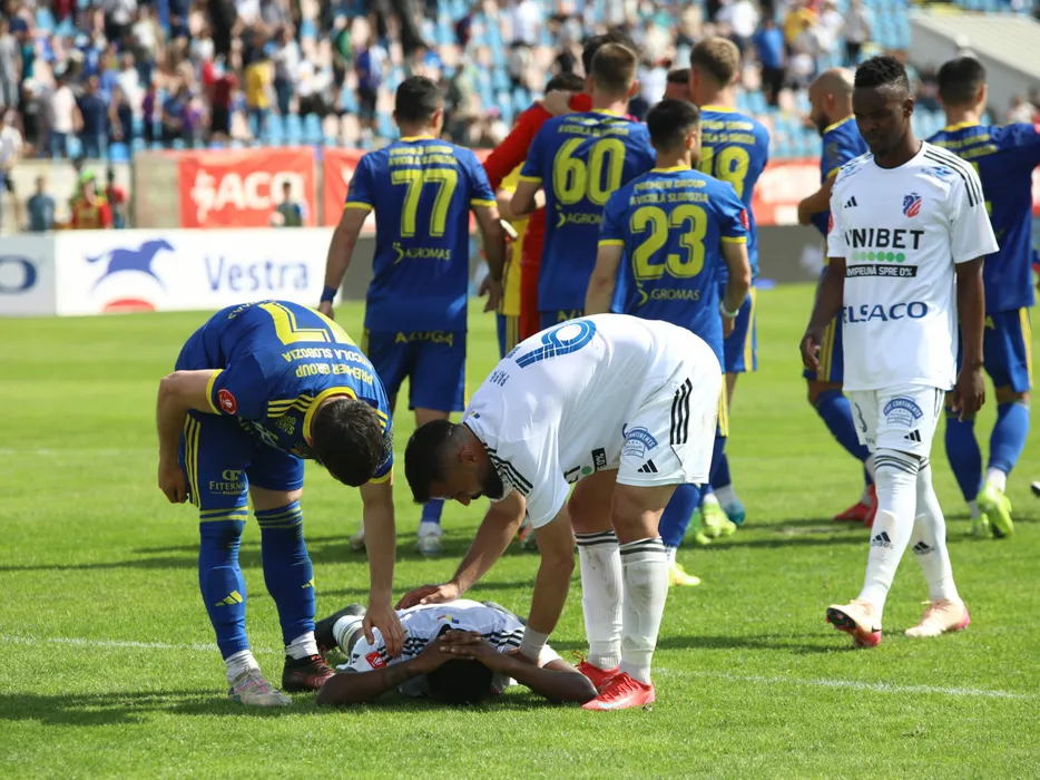 Hervin Ongenda a fost de neconsolat după ce a ratat lovitura de la 11 metri în prelungirile meciului cu Unirea Slobozia. | Foto: Sport Pictures
