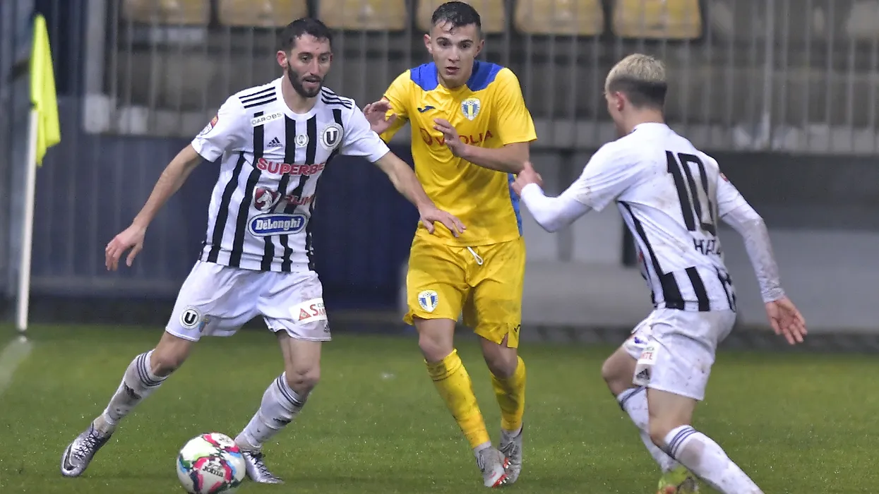 Florinel Mitrea si Mario-George Bratu in meciul de fotbal dintre Petrolul Ploiesti si Universitatea Cluj, contand pentru Liga a-2-a Casa Pariurilor, desfasurat pe Stadionul Ilie Oana din Ploiesti, marti 7 decembrie 2021. © FOTO:Razvan Pasarica/SPORT PICTURES