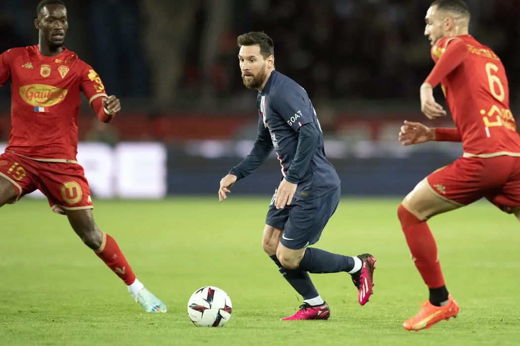 Leo Messi of Paris Saint-Germain in action during the Ligue 1 Uber Eats match between Paris Saint Germain and Angers at Parc des Princes, on January 11, 2023 in Paris, France.