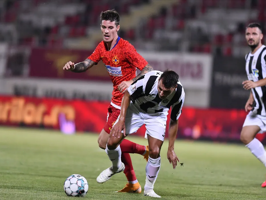 Dennis Man si Risto Radunovic in meciul de fotbal dintre Astra Giurgiu si FCSB, contand pentru Liga 1 Casa Pariurilor, desfasurat pe Stadionul Marin Anastasovici din Giurgiu, sambata 22 august 2020. © FOTO:Razvan Pasarica/SPORT PICTURES
