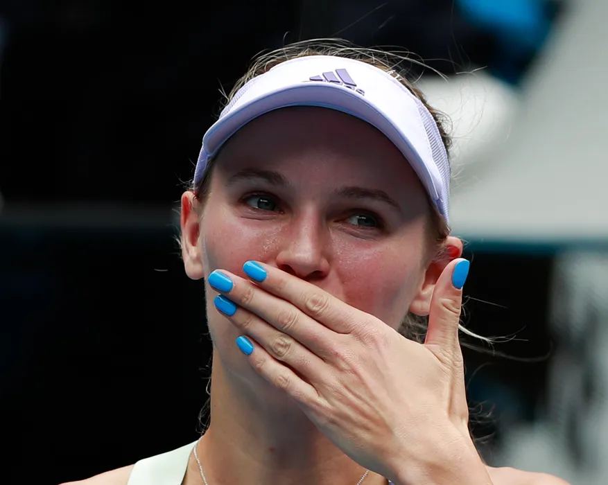MELBOURNE, Jan. 22, 2020 Caroline Wozniacki of Denmark reacts after winning the women's singles second round match against Dayana Yastremska of Ukraine at the 2020 Australian Open tennis tournament in Melbourne, Australia, Jan. 22, 2020. (Credit Image: © Wang Jingqiang/Xinhua via ZUMA Wire)