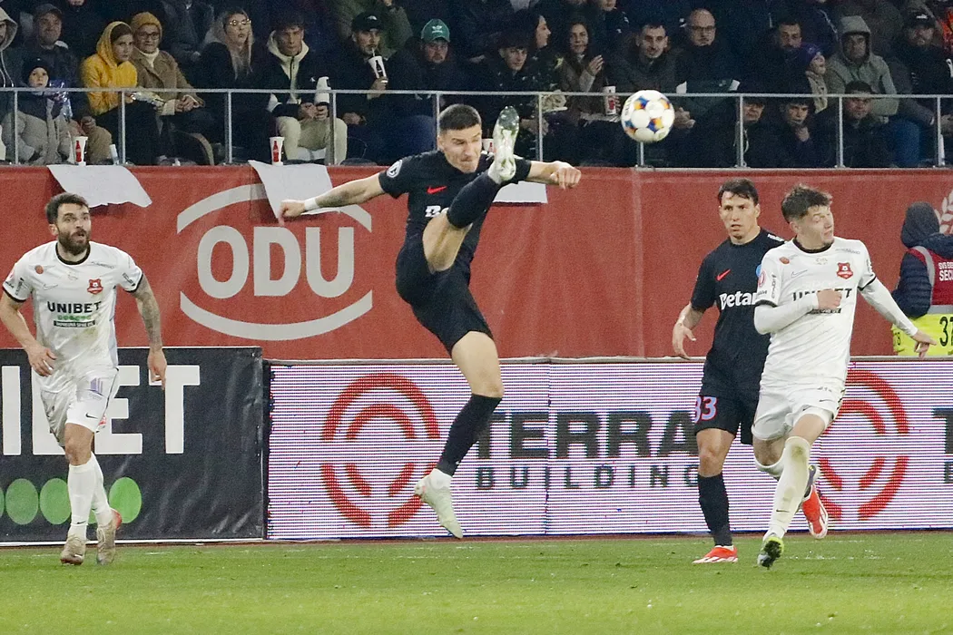 Daniel Graovac, Risto Radunovic si Alexandru Laurentiu Oroian, Aurelian Ionut Chitu in meciul de fotbal dintre AFC Hermannstadt Sibiu si FCSB, contand pentru Superliga Superbet, desfasurat pe Stadionul Municipal din Sibiu, duminica 9 noiembrie 2025. © FOTO:Valentin Macrea/SPORT PICTURES
