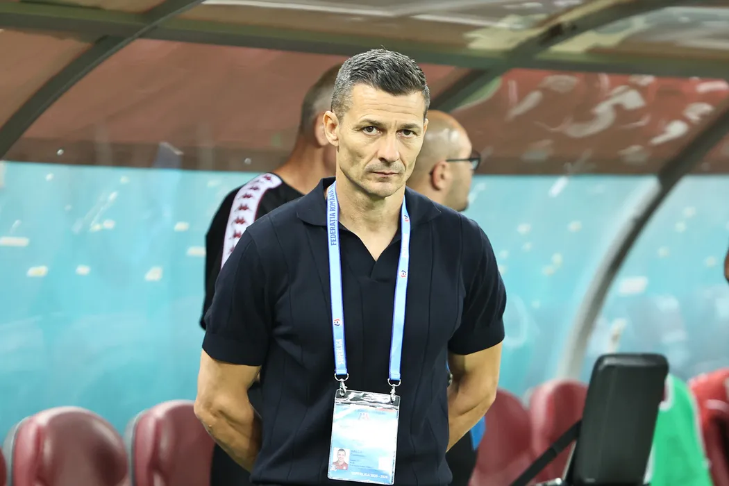 Constantin Galca, antrenorul echipei Rapid, urmareste meciul de fotbal contra formatiei FCSB din etapa a 6-a a Superligii, disputat pe Arena Nationala din Bucuresti, duminica, 17 august 2025. GEORGE FLUSTER/ MEDIAFAX FOTO