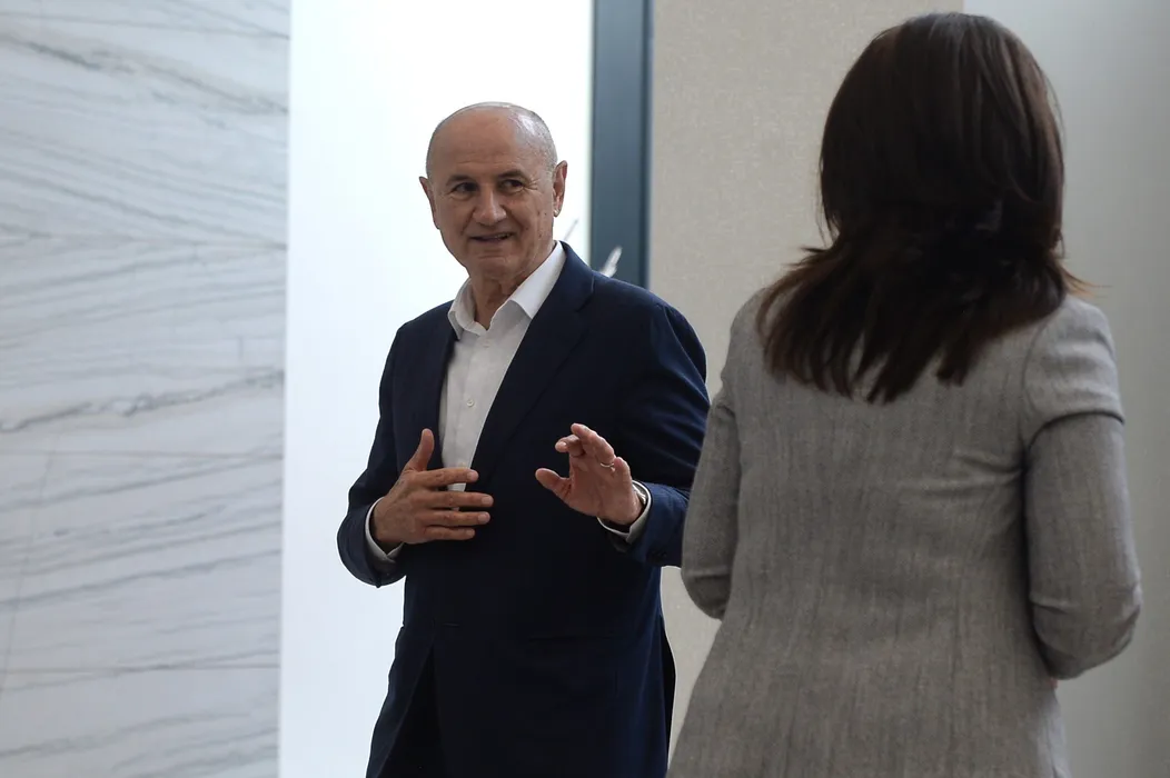 Omul de afaceri George Copos reactioneaza inainte de a fi vaccinat impotriva infectarii cu virusul SARS-COV-2, in Bucuresti, miercuri, 19 mai 2021. EDUARD VINATORU / MEDIAFAX FOTO