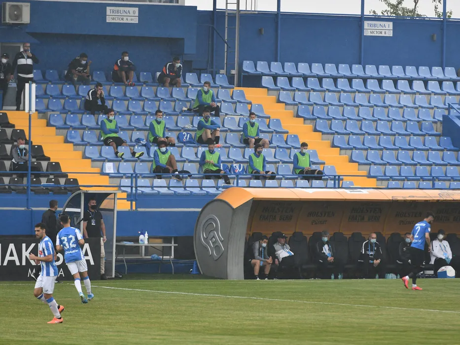 Banca de rezerve a Viitorului cu fotbalistii in tribuna pastrand distanta intre ei la meciul de fotbal dintre FC Viitorul si CSM Politehnica Iasi, contand pentru play-out-ul Ligii 1 Casa Pariurilor, disputat fara spectatori pe Arena centrala a Academiei Gheorghe Hagi din Ovidiu, duminica 14 iunie 2020. © FOTO:Razvan Pasarica/SPORT PICTURES