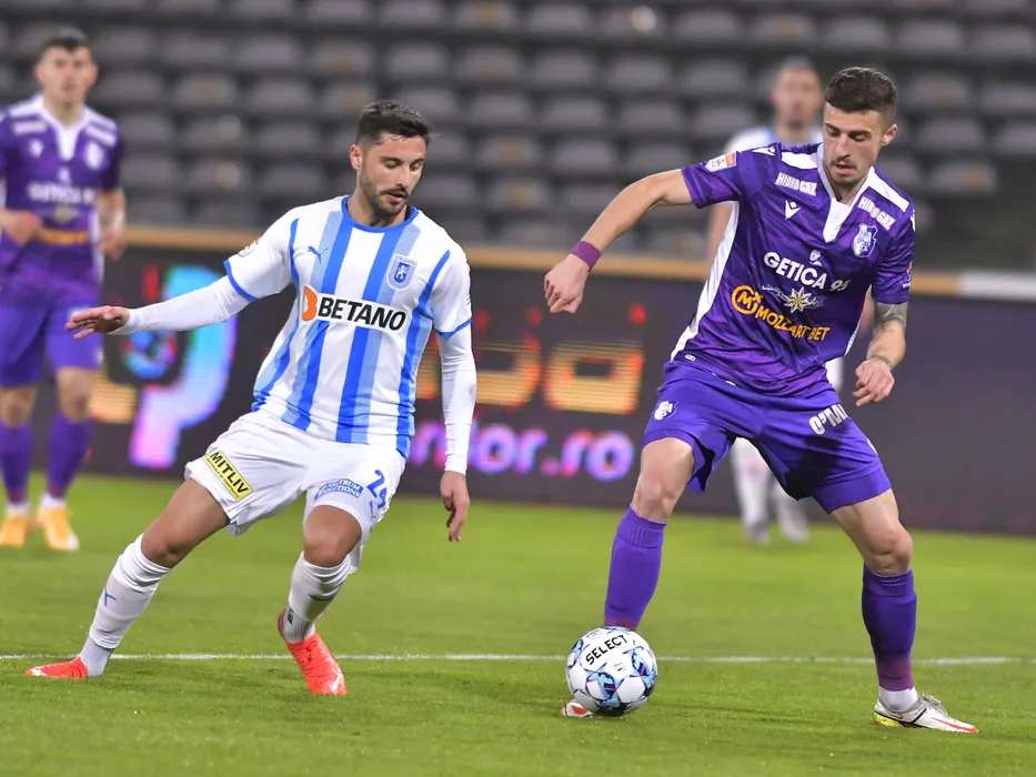 Ante Roguljic si Grigore Ioan Turda in meciul de fotbal dintre FC Arges si Universitatea Craiova, contand pentru Liga 1 Casa Pariurilor, desfasurat pe Stadionul Nicolae Dobrin din Pitesti, duminica 21 noiembrie 2021. © FOTO:Razvan Pasarica/SPORT PICTURES