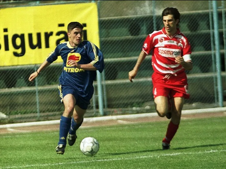 Gheorghe Orlando si Ionut Lupescu in meciul de fotbal dintre Petrolul Ploiesti si Dinamo Bucuresti, desfasurat pe Stadionul Ilie Oana din Ploiesti, miercuri 2 mai 2001. © FOTO:Razvan Pasarica/SPORT PICTURES