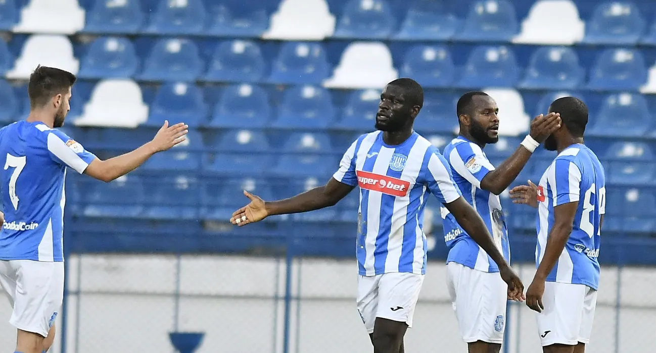 Michael Junior Omoh se bucura dupa un gol marcat alaturi de Kevin Luckassen si Doru Popadiuc in meciul de fotbal dintre CSM Politehnica Iasi si FC Viitorul Constanta, contand pentru play-off-ul Ligii 1 Casa Pariurilor, disputat fara spectatori pe Stadionul Emil Alexandrescu din Iasi, luni 20 iulie 2020. © FOTO:Razvan Pasarica/SPORT PICTURES