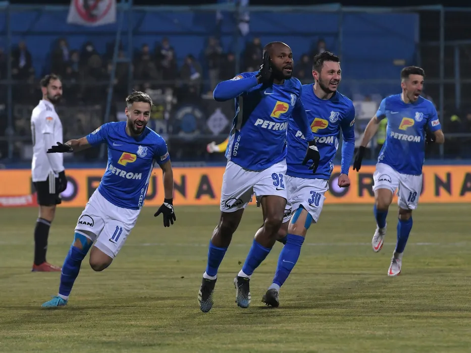 Bucurie a fotbalistilor constanteni dupa un gol marcat cu Virgil Andrei Ciobanu, Michael Omoh, Florin Flavius Purece si Andrei Viorel Artean in meciul de fotbal dintre Farul Constanta si FC U Craiova, contand pentru Liga 1 Casa Pariurilor, desfasurat pe Stadionul central al Academiei Gheorghe Hagi din Ovidiu, luni 24 ianuarie 2022. © FOTO:Razvan Pasarica/SPORT PICTURES