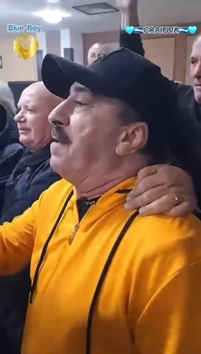 „Hai Universitatea, hai Craiova, tu campioana unei mari iubiri!”. Imagini senzaționale cu Gigi Nețoiu în timp ce cântă de gât cu Sorin Cârțu, alături de Cornel Palade și Romică Țociu, imnul lui Adrian Păunescu