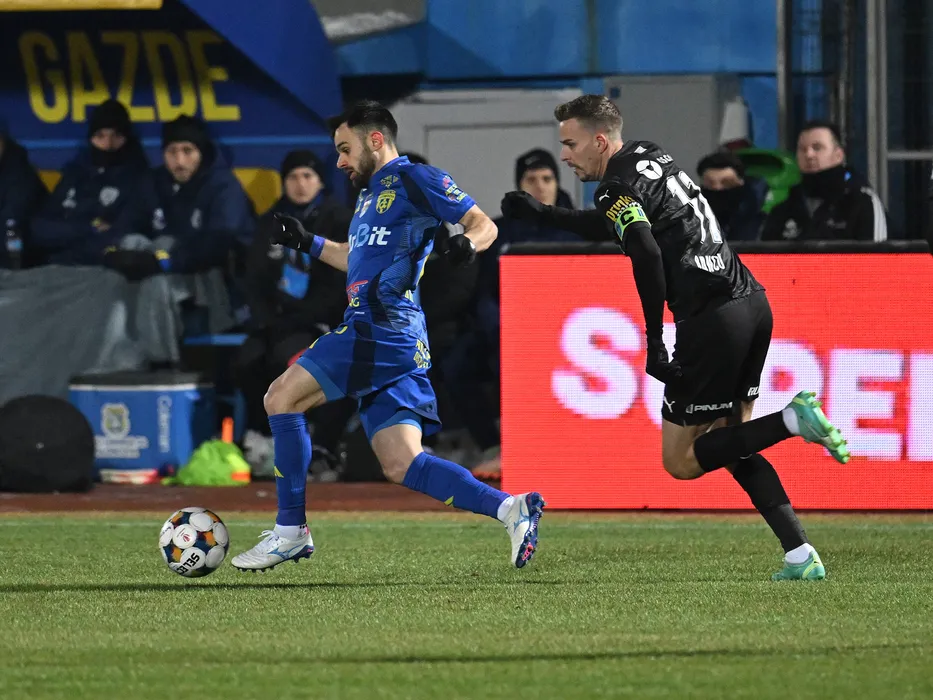 Cristi Marian Barbut si Nicusor Silviu Bancu in meciul dintre Unirea Slobozia si Universitatea Craiova, contand pentru Superliga Superbet, desfasurat pe Stadionul 1 Mai din Slobozia, duminica 22 februarie 2026. © FOTO:Razvan Pasarica/SPORT PICTURES