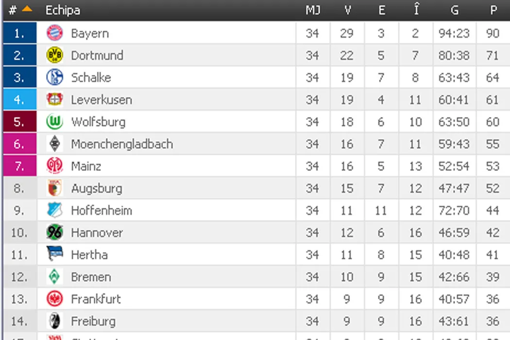 Hamburg va juca baraj, Nurnberg și Braunschweig au retrogradat. Rezultatele din ultima etapă a campionatului Germaniei