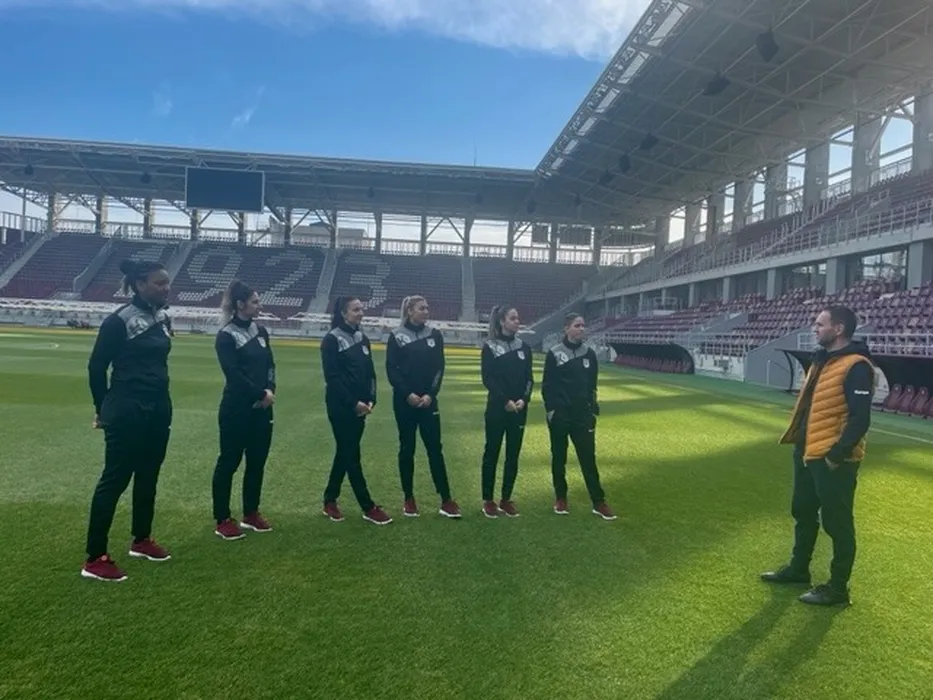 Handbalistele de la Rapid, în vizită pe noul stadion din Giulești: „Seamănă cu arena celor de la Espanyol sau Bilbao!”. Rapidistele visează să sărbătorească titlul acolo alături de galerie