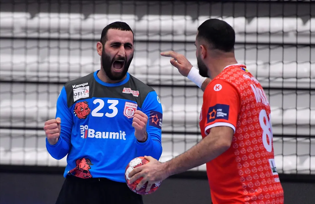 Saeid Heidarirad se bucura dupa o suita de suturi aparate in meciul de handbal masculin dintre Dinamo Bucuresti si USAM Nimes Gard, contand pentru Liga Europeana EHF, desfasurat fara spectatori in Sala Dinamo din Bucuresti, marti 24 noiembrie 2020. © FOTO:Razvan Pasarica/SPORT PICTURES