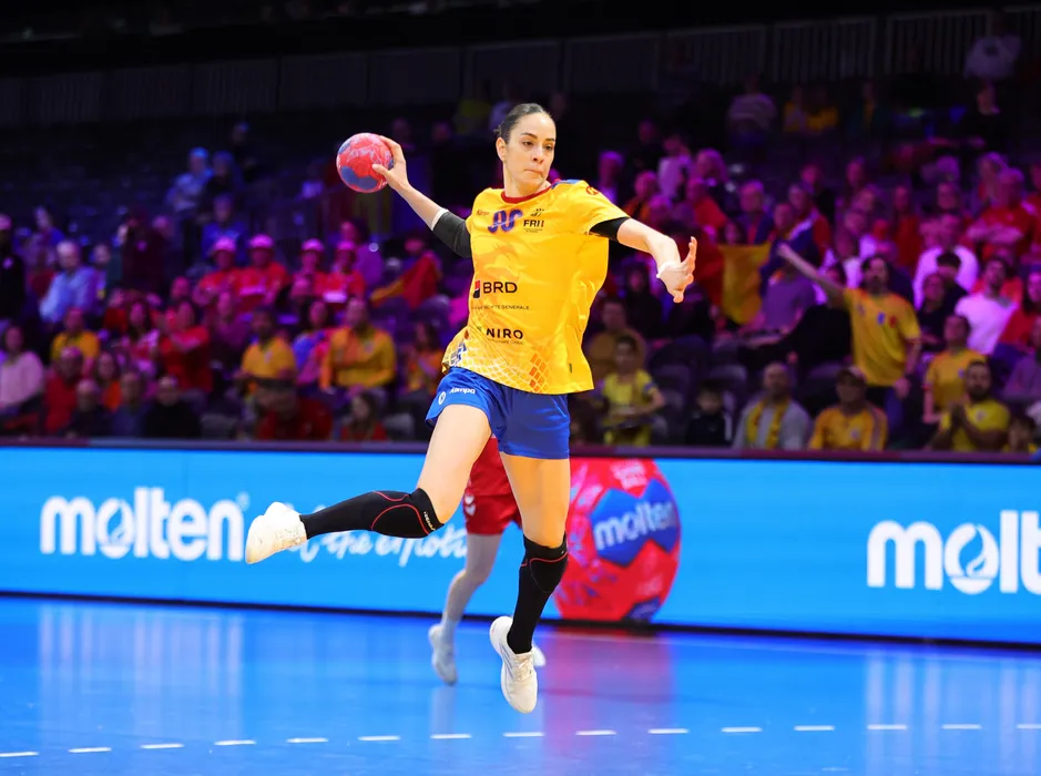 Sorina-Maria Grozav in meciul de handbal feminin dintre Elvetia si Romania, contand pentru Campionatul Mondial de Handbal Feminin 2025, desfasurat la Ahoy Arena din Rotterdam, duminica 7 decembrie 2025. © FOTO:Sorin Pana/SPORT PICTURES