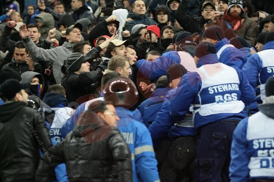 HAOS în tribune la România – Uruguay!** Fanii s-au bătut cu forțele de ordine și au fost evacuați! Bannerul care a pornit RĂ‚ZBOIUL