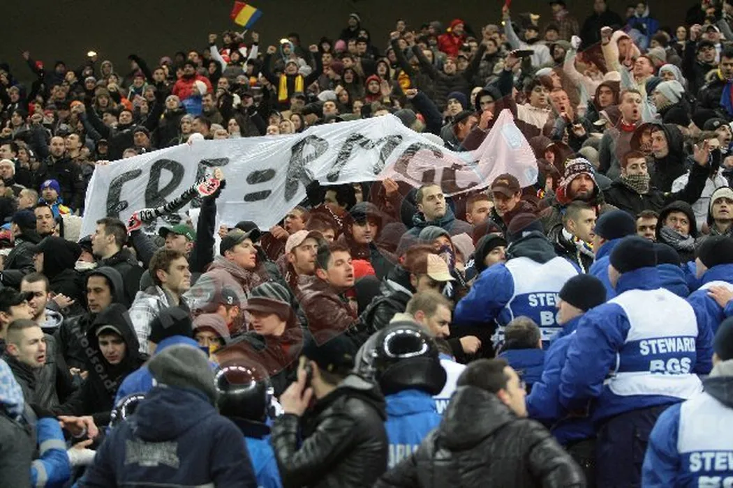 HAOS în tribune la România – Uruguay!** Fanii s-au bătut cu forțele de ordine și au fost evacuați! Bannerul care a pornit RĂ‚ZBOIUL