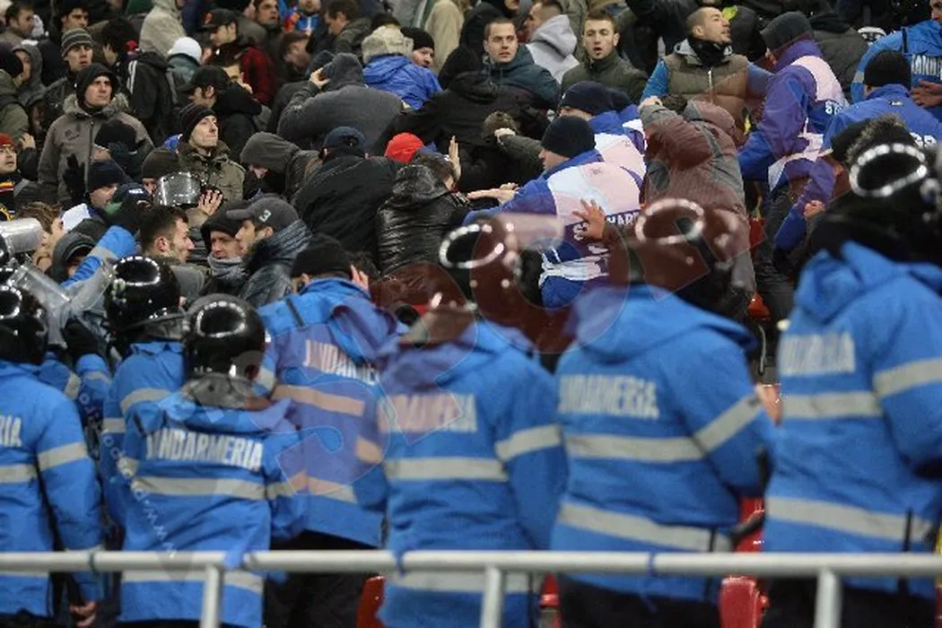 HAOS în tribune la România – Uruguay!** Fanii s-au bătut cu forțele de ordine și au fost evacuați! Bannerul care a pornit RĂ‚ZBOIUL