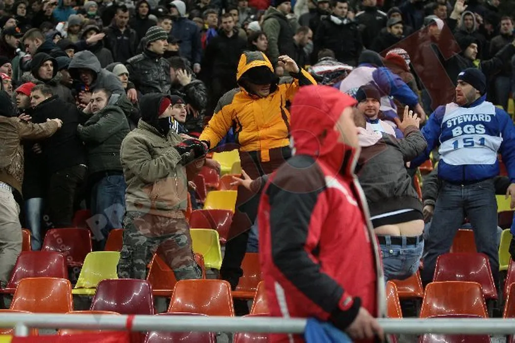 HAOS în tribune la România – Uruguay!** Fanii s-au bătut cu forțele de ordine și au fost evacuați! Bannerul care a pornit RĂ‚ZBOIUL