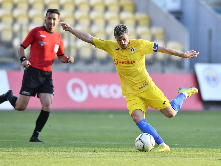 Laurentiu Marinescu in meciul de fotbal dintre Petrolul Ploiesti si FC Arges, contand pentru play-off-ul de promovare a Ligii a-2-a Casa Pariurilor, disputat fara spectatori pe Stadionul Ilie Oana din Ploiesti, marti 28 iulie 2020. © FOTO:Razvan Pasarica/SPORT PICTURES