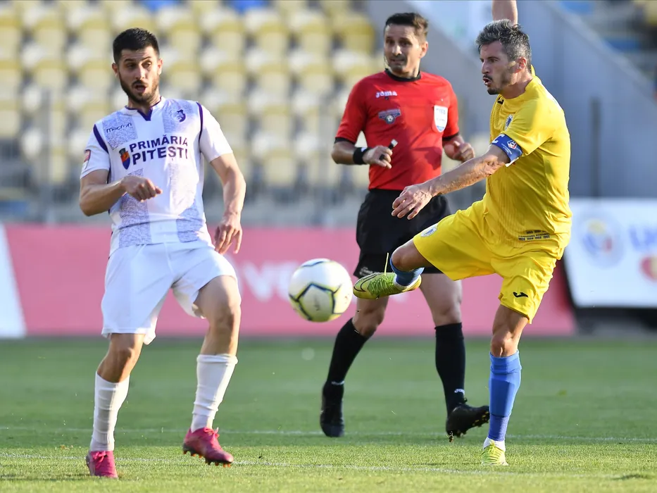 Ionut Serban si Laurentiu Marinescu in meciul de fotbal dintre Petrolul Ploiesti si FC Arges, contand pentru play-off-ul de promovare a Ligii a-2-a Casa Pariurilor, disputat fara spectatori pe Stadionul Ilie Oana din Ploiesti, marti 28 iulie 2020. © FOTO:Razvan Pasarica/SPORT PICTURES