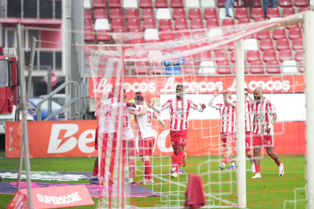 Fotbalistii aradeni se bucura dupa un gol marcat in meciul de fotbal dintre UTA Arad si FC Botosani, contand pentru Superliga Superbet, desfasurat pe Arena Francisc Neuman din Arad, duminica 15 februarie 2026. © FOTO:Alexandra Fechete/SPORT PICTURES
