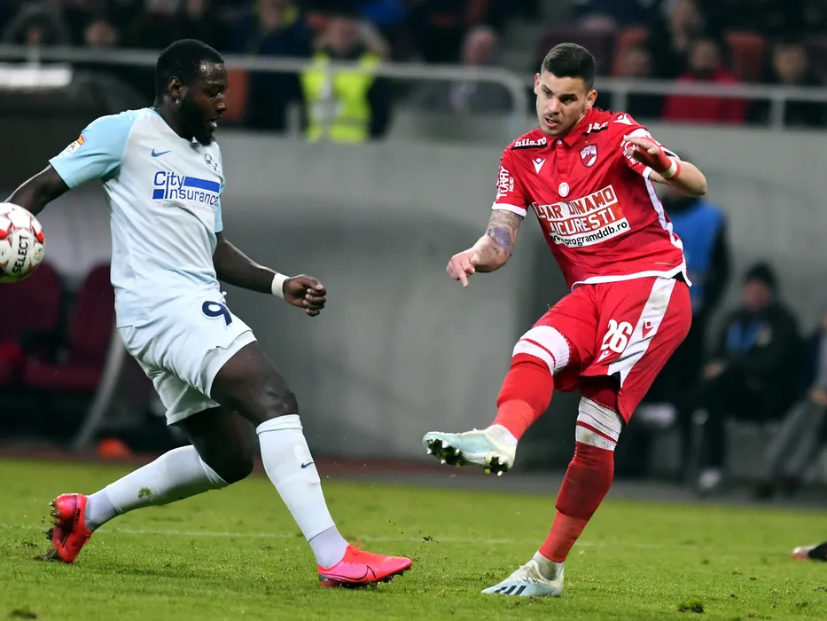 Harlem Eddy Gnohere si Kristian Kostrna in meciul de fotbal dintre Dinamo Bucuresti si FCSB, contand pentru Liga 1 Casa Pariurilor, disputat pe Arena Nationala din Bucuresti, duminica 16 februarie 2019. © FOTO:Razvan Pasarica/SPORT PICTURES