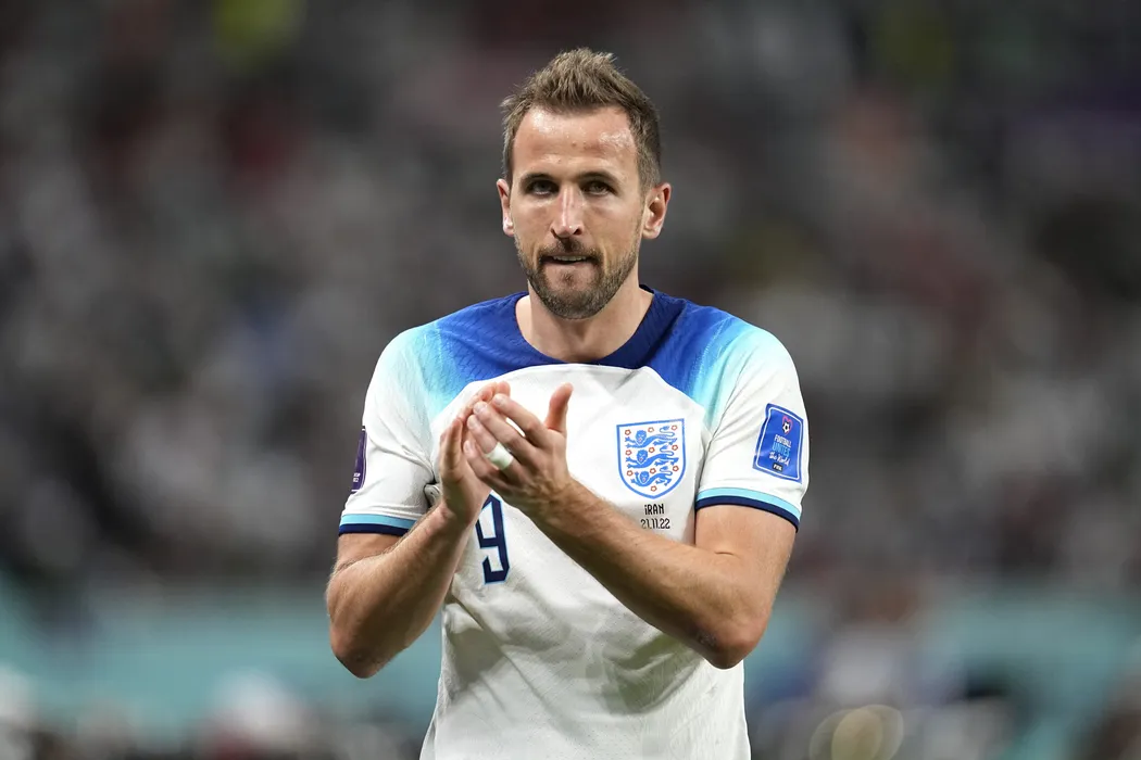 England's Harry Kane acknowledges the applause from the crowd during the World Cup group B soccer match between England and Iran at the Khalifa International Stadium in Doha, Qatar, Monday, Nov. 21, 2022. (AP Photo/Abbie Parr)