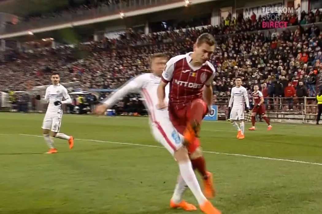 Hațegan, faza și problema! FOTO | Clujenii au avut motive să mai ceară un penalty, centralul din Arad n-a văzut hențul lui Alibec înainte să-l elimine pe Peteleu
