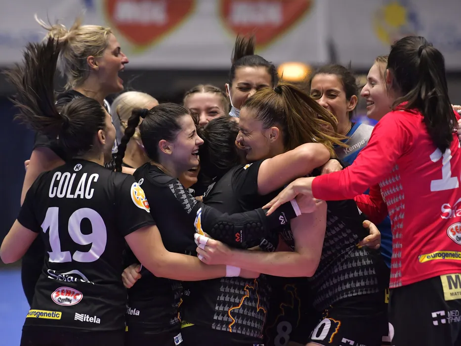 Ana Maria Savu si Cristina Florina Zamfir se bucura dupa victoria din meciul de handbal feminin dintre SCM U Craiova si CSM Bucuresti, contand pentru Liga Florilor, desfasurat fara spectatori in Sala Ioan Kunst Ghermanescu-Polivalenta din Bucuresti, luni 31 mai 2021. © FOTO:Razvan Pasarica/SPORT PICTURES