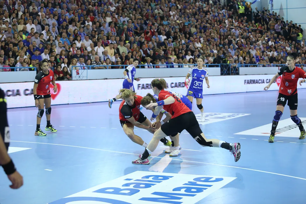 HCM Baia Mare a câștigat cu 24-21 derby-ul cu CSM București și s-a desprins la patru puncte. Braziliencele Arenhart și Pessoa au făcut show în cele două porți