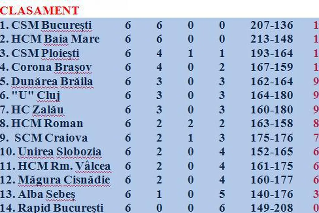 HCM Baia Mare, victorie la 10 goluri în fața echipei HC Zalău, care s-a prezentat fără antrenorul Gheorghe Tadici. Craiova a renăscut la Cluj. Clasamentul în Liga Națională de handbal feminin după 6 etape