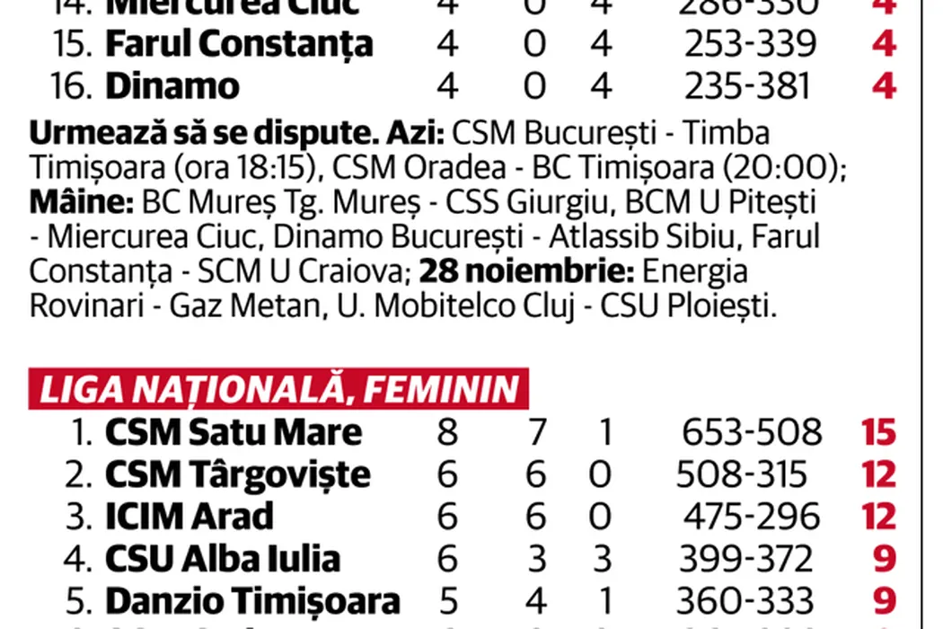 HCM și Oltchim au „decolat” în noul sezon!** Vezi clasamentele la zi din sporturile de echipă din România