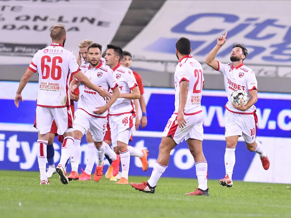 Bucurie dinamovista cu Alexandru Ilie Rauta, Ismael Lopez Blanco si Borja Valle Balonga in meciul de fotbal dintre FCSB si Dinamo Bucuresti, contand pentru Liga 1 Casa Pariurilor, desfasurat fara spectatori pe Arena Nationala din Bucuresti, sambata 3 octombrie 2020. © FOTO:Razvan Pasarica/SPORT PICTURES