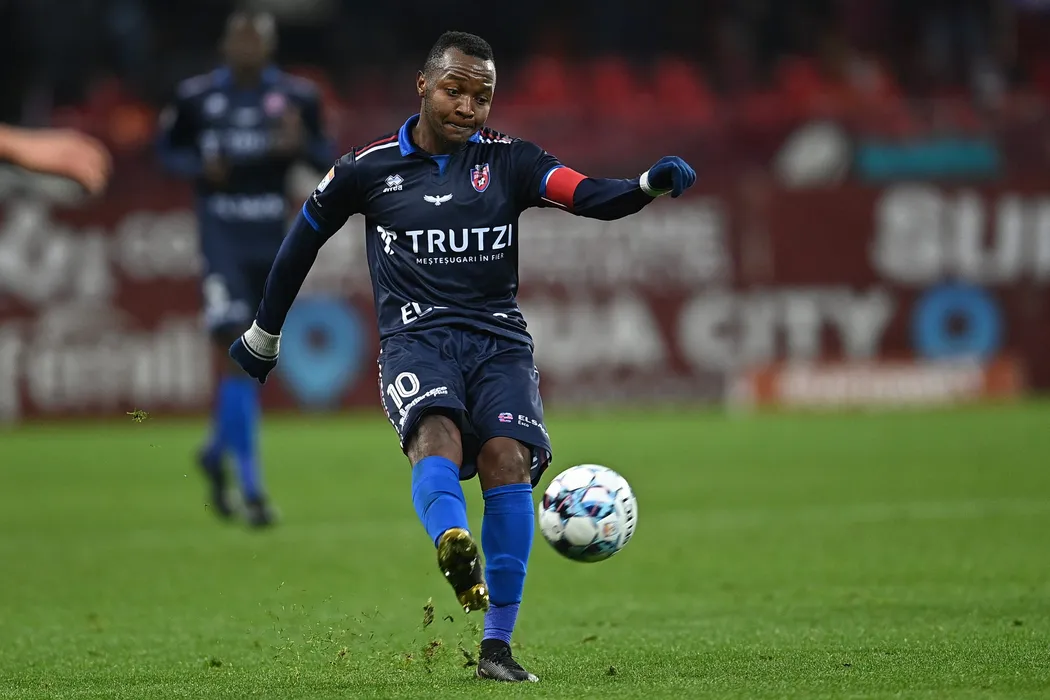 Hervin Ongenda, de la FC Botosani, suteaza in timpul meciului de fotbal contra echipei Rapid din etapa a XXI-a a Ligii 1, disputat pe Arena Nationala din Bucuresti, sambata, 18 noiembrie 2021. EDUARD VINATORU / MEDIAFAX FOTO