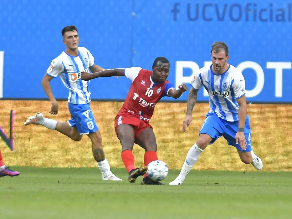 Stefan Marinel Vladoiu, Hervin Ongenda si Mihai Alexandru Balasa in meciul de fotbal dintre Universitatea Craiova si FC Botosani, contand pentru Liga 1 Casa Pariurilor, desfasurat pe Stadionul Ion Oblemenco din Craiova, duminica 1 august 2021. © FOTO:Razvan Pasarica/SPORT PICTURES