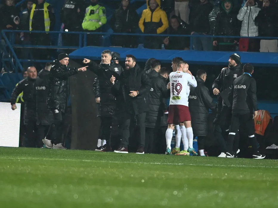 Antonio Valentin Sefer se bucura dupa un gol marcat alaturi de Adrian Mutu in meciul de fotbal dintre Farul Constanta si Rapid Bucuresti, contand pentru Superliga Superbet, desfasurat pe Stadionul central al Academiei Gheorghe Hagi din Ovidiu, sambata 11 martie 2023. © FOTO:Razvan Pasarica/SPORT PICTURES