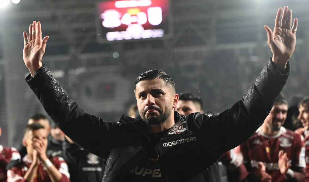 Horatiu Alexandru Moldovan multumeste galeriei rapidiste dupa meciul de fotbal dintre Rapid Bucuresti si FC U Craiova, din cadrul Superligii Superbet, desfasurat pe Superbet Arena-Giulesti din Bucuresti, vineri 19 ianuarie 2024. © FOTO:Razvan Pasarica/SPORT PICTURES