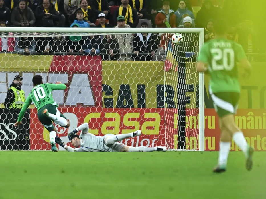 Jamie Reid marcheaza un gol in poarta lui Florin Nita in meciul amical de fotbal dintre Romania si Irlanda de Nord, desfasurat pe Arena Nationala, vineri 22 martie 2024. © FOTO:Razvan Pasarica/SPORT PICTURES