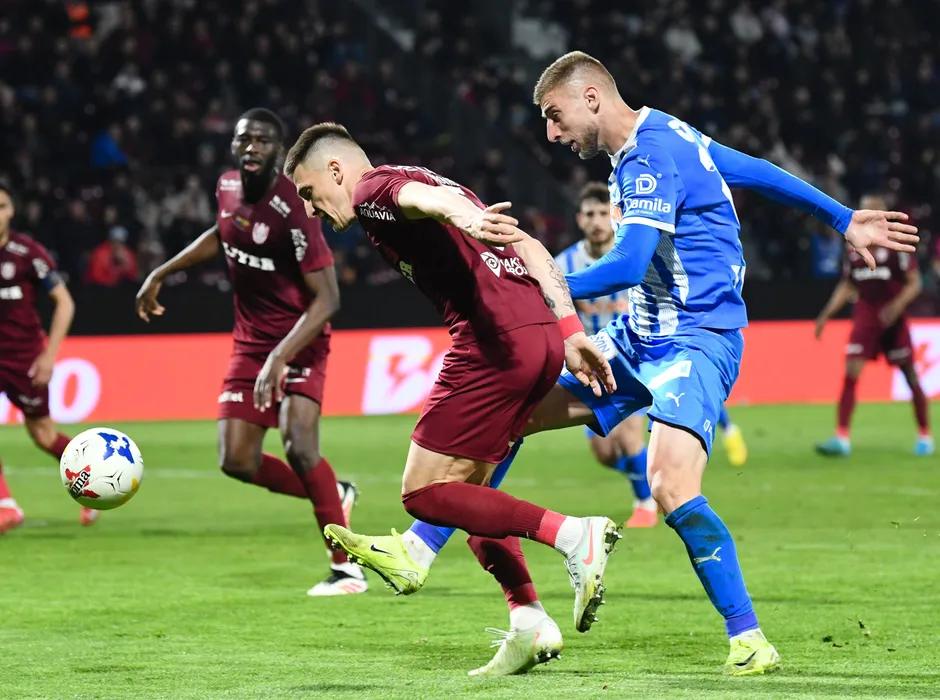 Daniel Graovac si Jovo Lukic in meciul de fotbal dintre FC CFR 1907 Cluj si Universitatea Craiova, contand pentru Cupa Romaniei Betano, desfasurat pe Stadionul Dr.Constantin Radulescu din Cluj-Napoca, joi 3 aprilie 2025. © FOTO: Flaviu Buboi/SPORT PICTURES