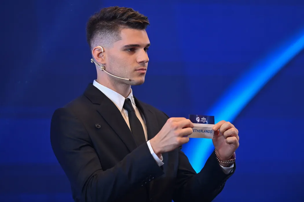 Fotbalistul Ianis Hagi participa la tragerea la sorti a grupelor turneului final al Campionatului European UEFA EURO Under 21 Championship, eveniment organizat la Ateneul Roman din Bucuresti, marti, 18 octombrie 2022. Campionatul European Under 21 se va desfasura in Romania si Georgia, in perioada 21 iunie - 8 iulie 2023. In Romania meciurile se vor disputa in Bucuresti (stadioanele Ghencea si Giulesti) si Cluj-Napoca (stadioanele Cluj Arena si Dr. Constantin Radulescu). Nationala Romaniei va juca toate meciurile din grupa pe stadionul Ghencea. Romania este singura tara care va fi gazda Campionatul European U21 pentru a doua oara. EDUARD VINATORU / MEDIAFAX FOTO