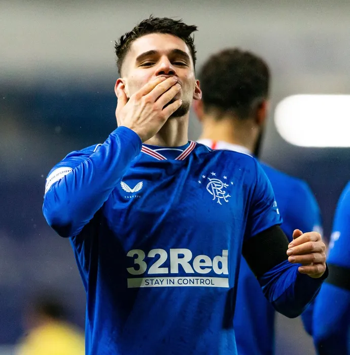 Rangers Midfielder Ianis Hagi celebrates scoring his sides first goal
