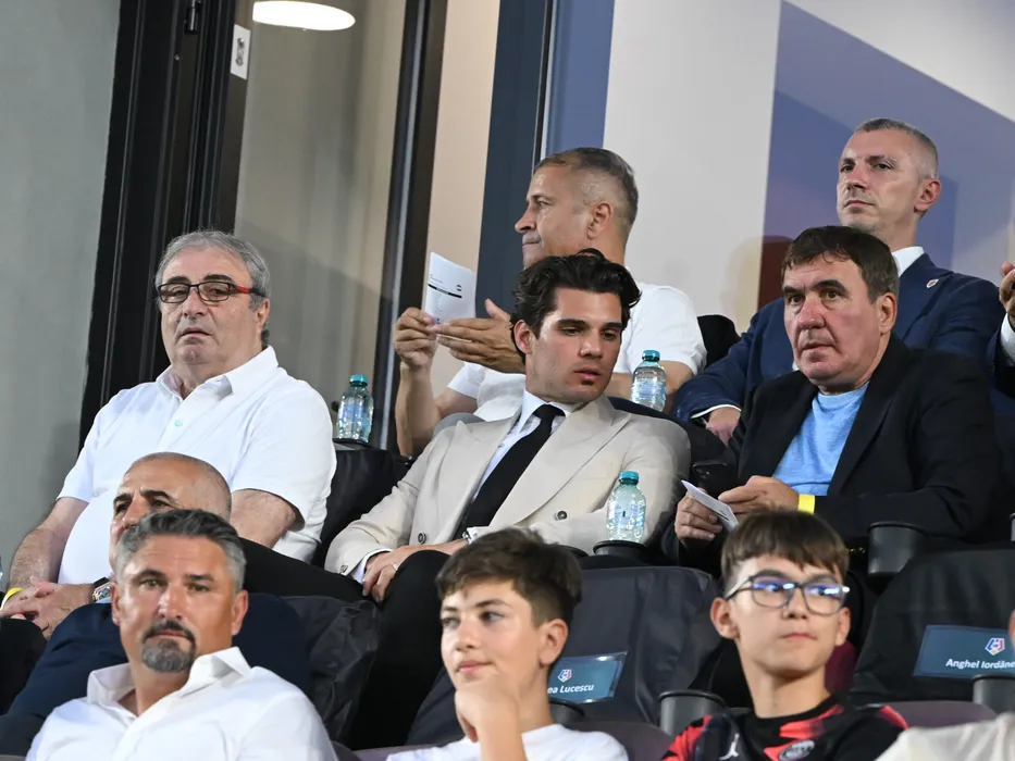 Mihai Stoichita, Gabriel Bodescu, Radu Visan, Ianis Hagi si Gheorghe Hagi in tribuna la meciul de fotbal dintre Spania U19 si Olanda U19, finala Campionatului European U19, desfasurat pe Stadionul Giulesti din Bucuresti, joi 26 iunie 2025. © FOTO:Razvan Pasarica/SPORT PICTURES