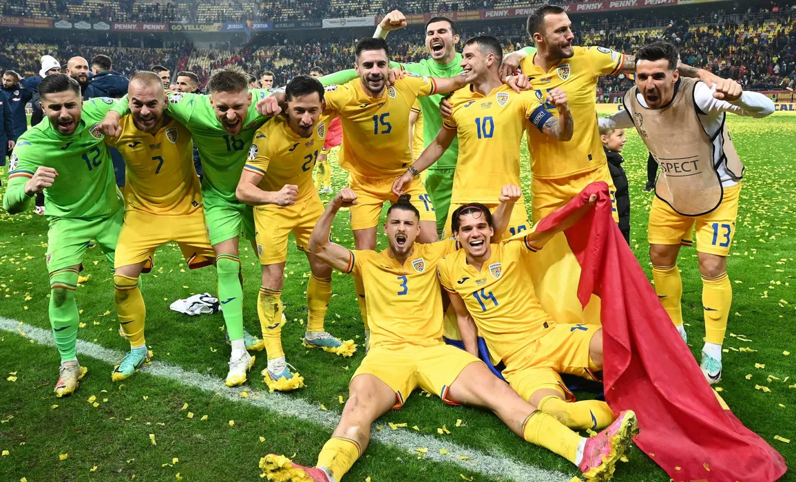 Fotbalistii romani Horațiu Moldovan, Florin Nita, Ianis Hagi, Denis Alibec, Olimpiu Morutan, Ionut Radu, Nicolae Stanciu, Vasile Mogos, Andrei Artean si Andrei Burca se bucura dupa meciul de fotbal dintre Romania si Elvetia, din cadrul preliminariilor Campionatului European 2024, desfasurat pe Arena Nationala, marti 21 noiembrie 2023. © FOTO:Razvan Pasarica/SPORT PICTURES