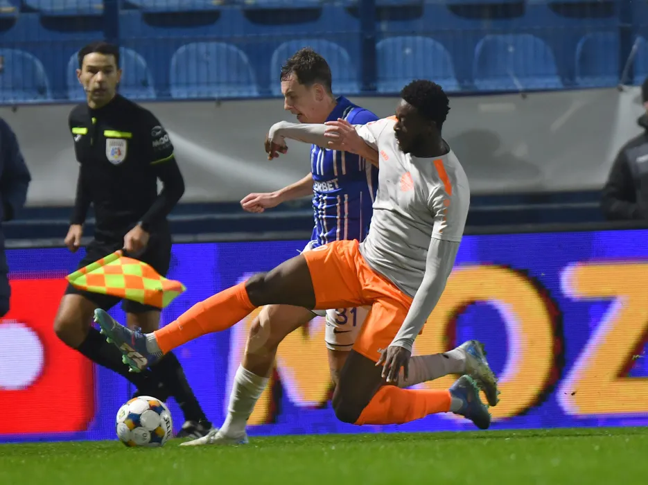 Aboubacar Camara si Mihai Alexandru Isfan in meciul de fotbal dintre Metaloglobus Bucuresti si Farul Constanta, contand pentru Superliga Superbet, desfasurat pe Clinceni Arena din Clinceni, duminica 7 decembrie 2025. © FOTO:Daniel George Ilinca/SPORT PICTURES