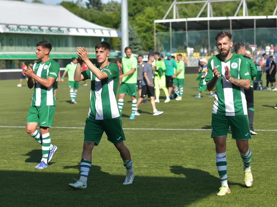 Fotbalistii din Chiajna Raul Palmes si Florin Borta saluta galeria dupa meciul de fotbal dintre Concordia Chiajna si Chindia Targoviste, contand pentru Barajul pentru Liga 1 Casa Pariurilor, desfasurat pe Stadionul comunal Concordia din Chiajna, sambata 21 mai 2022. © FOTO:Razvan Pasarica/SPORT PICTURES