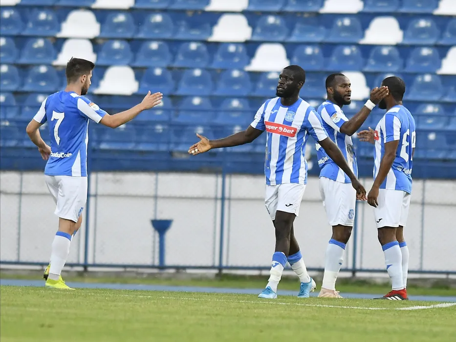Michael Junior Omoh se bucura dupa un gol marcat alaturi de Kevin Luckassen si Doru Popadiuc in meciul de fotbal dintre CSM Politehnica Iasi si FC Viitorul Constanta, contand pentru play-off-ul Ligii 1 Casa Pariurilor, disputat fara spectatori pe Stadionul Emil Alexandrescu din Iasi, luni 20 iulie 2020. © FOTO:Razvan Pasarica/SPORT PICTURES