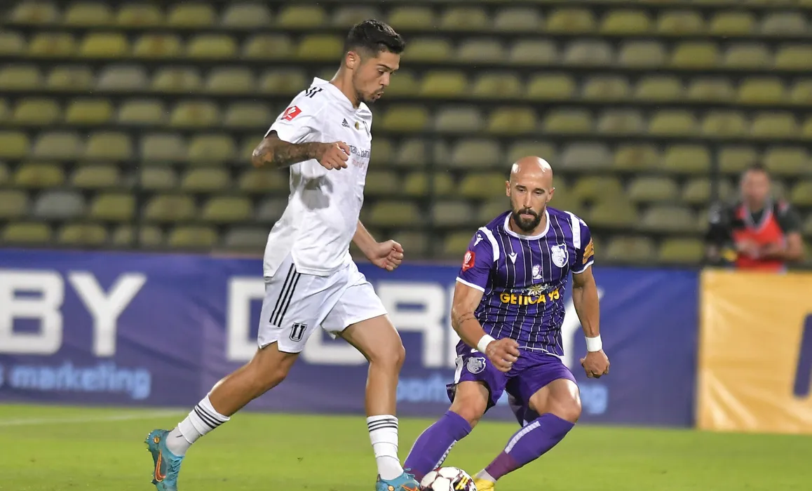 Gabriel Cristian Iancu si Iasmin Latovlevici in meciul de fotbal dintre FC Arges si FC U Craiova, contand pentru Superliga Superbet, desfasurat pe Stadionul Nicolae Dobrin din Pitesti, sambata 12 august 2022. © FOTO:Razvan Pasarica/SPORT PICTURES