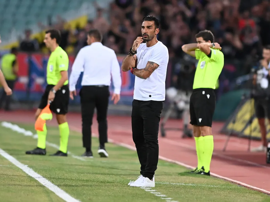 Elias Charalambous reactioneaza in meciul de fotbal dintre TSKA 1948 Sofia si FCSB, din cadrul UEFA Europa Conference League, desfasurat pe Stadionul National Vasil Levski din Sofia, miercuri 26 iulie 2023. © FOTO:Razvan Pasarica/SPORT PICTURES